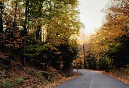 Sometimes the best fall views come after a long, steep hike — but not this time.