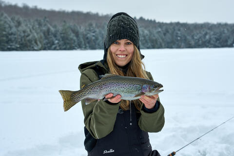 Jigging for trout with Ashley Rae in Haliburton Forest