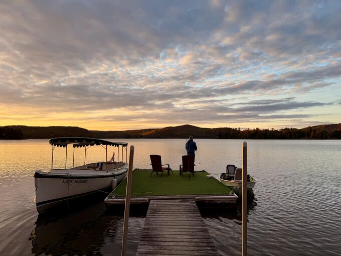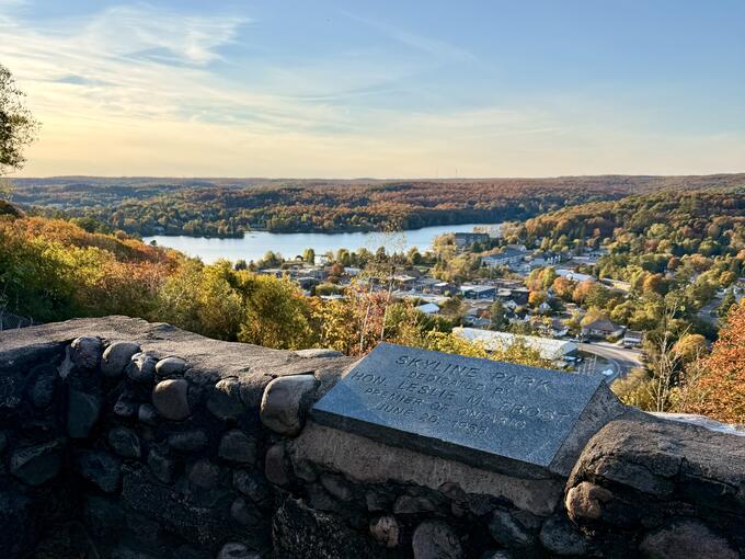 We wrapped up the trip with massages back at the spa, then one last bit of fishing before packing up. On the drive home, we made a final stop at Skyline Park, which overlooks downtown Haliburton. With coffee in hand, we watched the sun dip below the trees, the town glowing in the last light of the day.