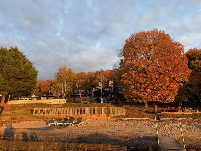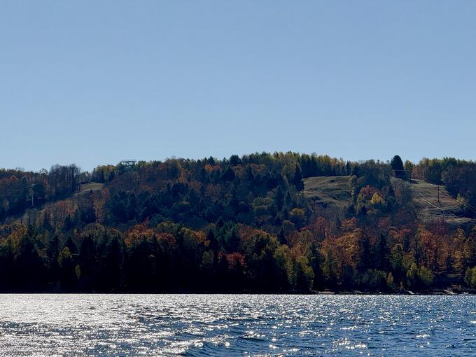 Out on the lake, the air was cool but the sun made it feel warm enough to stay for hours. The shoreline was a reflection of autumn itself; vibrant, fleeting, and beautiful. We passed the “Lady Hughes”, the inn’s tour boat, quietly gliding along with guests taking in the same view. An entire family of loons swam nearby, calling softly back and forth across the water. They seemed to be doing the same as us, squeezing out the last bit of autumn before flying south.