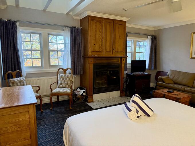 By late afternoon, we arrived at Sir Sam’s Inn & Spa, a historic lodge perched on the edge of the lake. A perfect couples getaway. Our room overlooked the water, and the dining room was just a quick walk downstairs… more time for everything else!