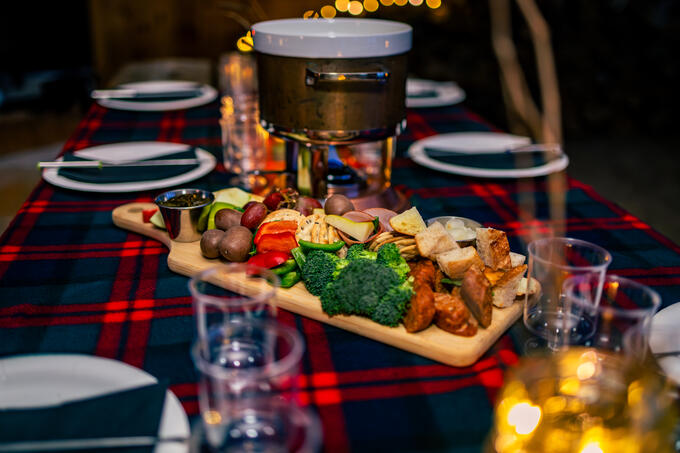 The cabin was a candlelit dream, filled with the sound of acoustic music and the scent of bubbling cheese. We settled in for a Swiss-style fondue experience curated by Canthooks Restaurant.