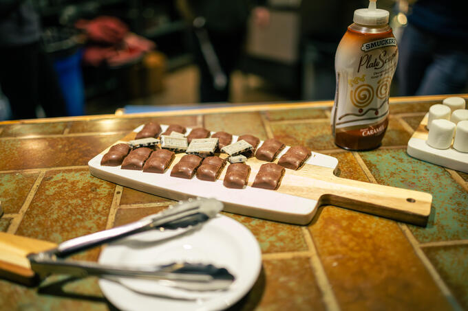 Once at the base, we took off our gear and headed into Black Donald’s Pub, roasting s’mores over an open fire and sipping on signature winter cocktails (the Hot Toddy was so tasty!).