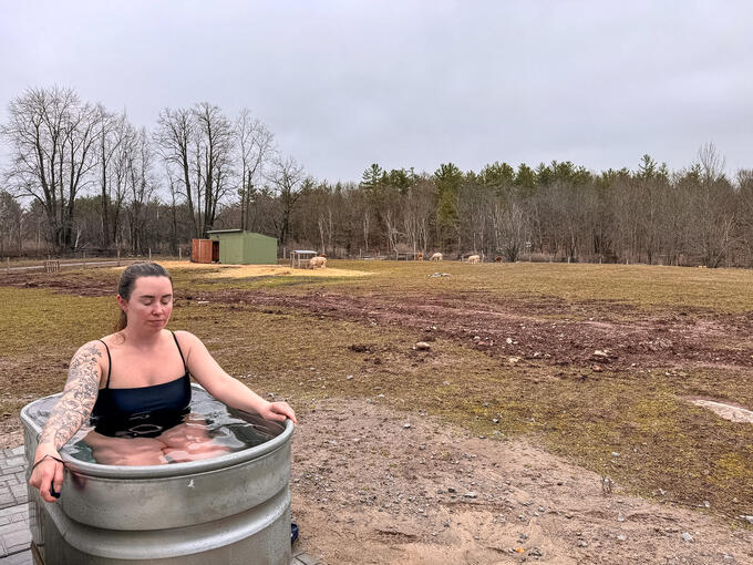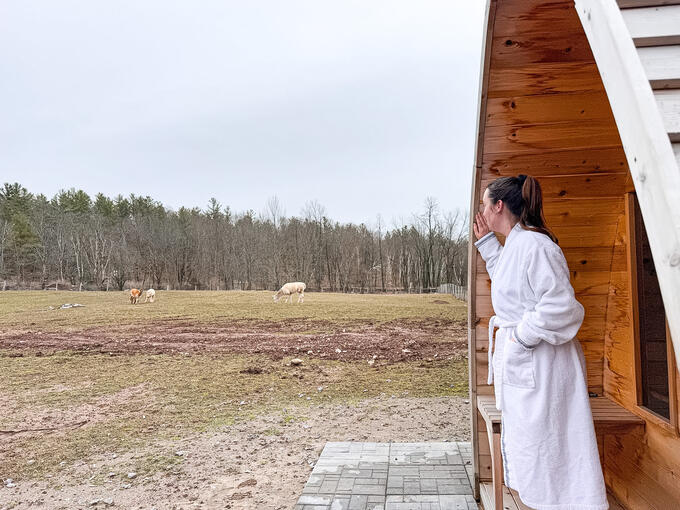 The stay was exactly what I was craving. Endless morning coffee inside the dome while the morning light comes in. Reading, journaling, and enjoying the peace and quiet. This is a trip about disconnecting to reconnect. Plus, inside the alpaca enclosure, there’s a wood-fire sauna and cold plunge, how unique is that? It was the perfect bonus added to this restful weekend.